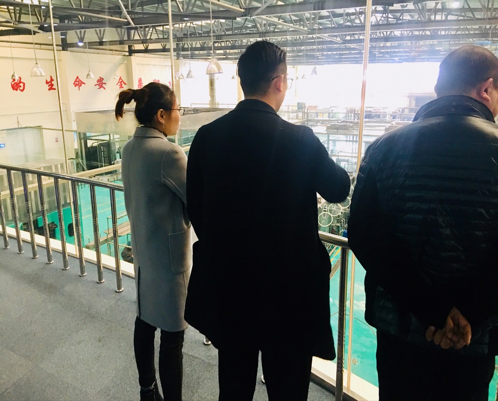 常务副总姜晶晶向来宾介绍汤泉谷生产线:汤泉谷年产能力20万吨天然矿泉水,公司是辽宁省矿泉水产业单厂投资规模最大的企业,引进意大利西帕全程自动化无菌矿泉水生产线,是国内自动化程度最高、质量保障体系最佳的生产企业之一。