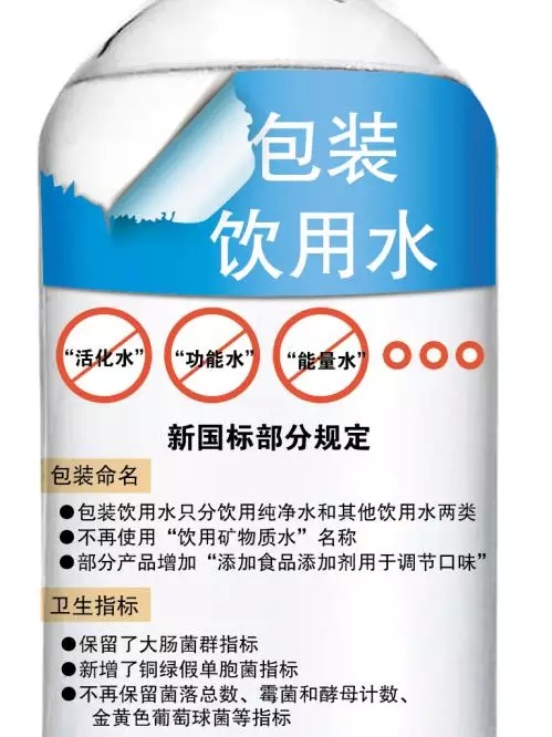 5月24日起,《食品安全国家标准—包装饮用水》正式开始实施,适用范围除了饮用之外,包括所有直接饮用的包装饮用水。现代快报记者了解到,新规是强制性标准,它对包装饮用水的类别、成分和名称都作出了规范。